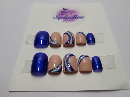 Royal blue with glitter. Short Square, (14 pieces) Press-On Nails including Prep Kit (PN000046)