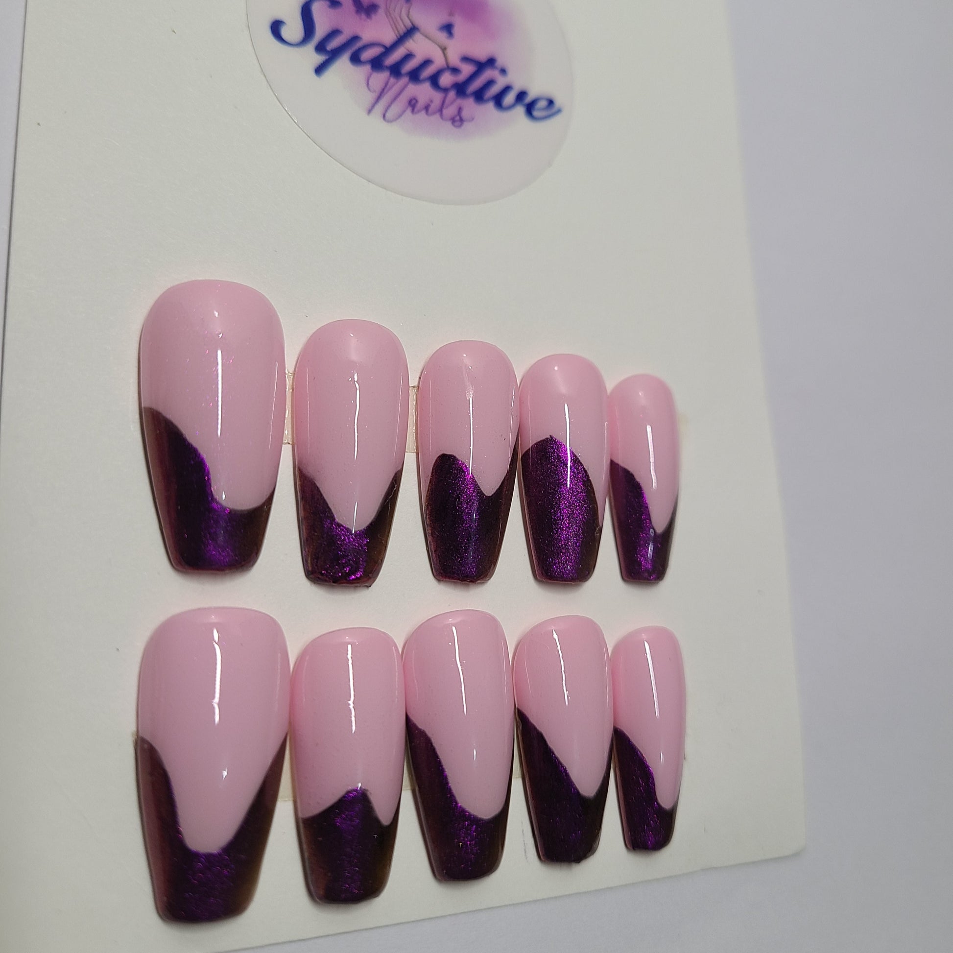 Purple chrome french nails. Medium Coffin,(14 pieces) Press-On Nails including Prep Kit (PN000064)