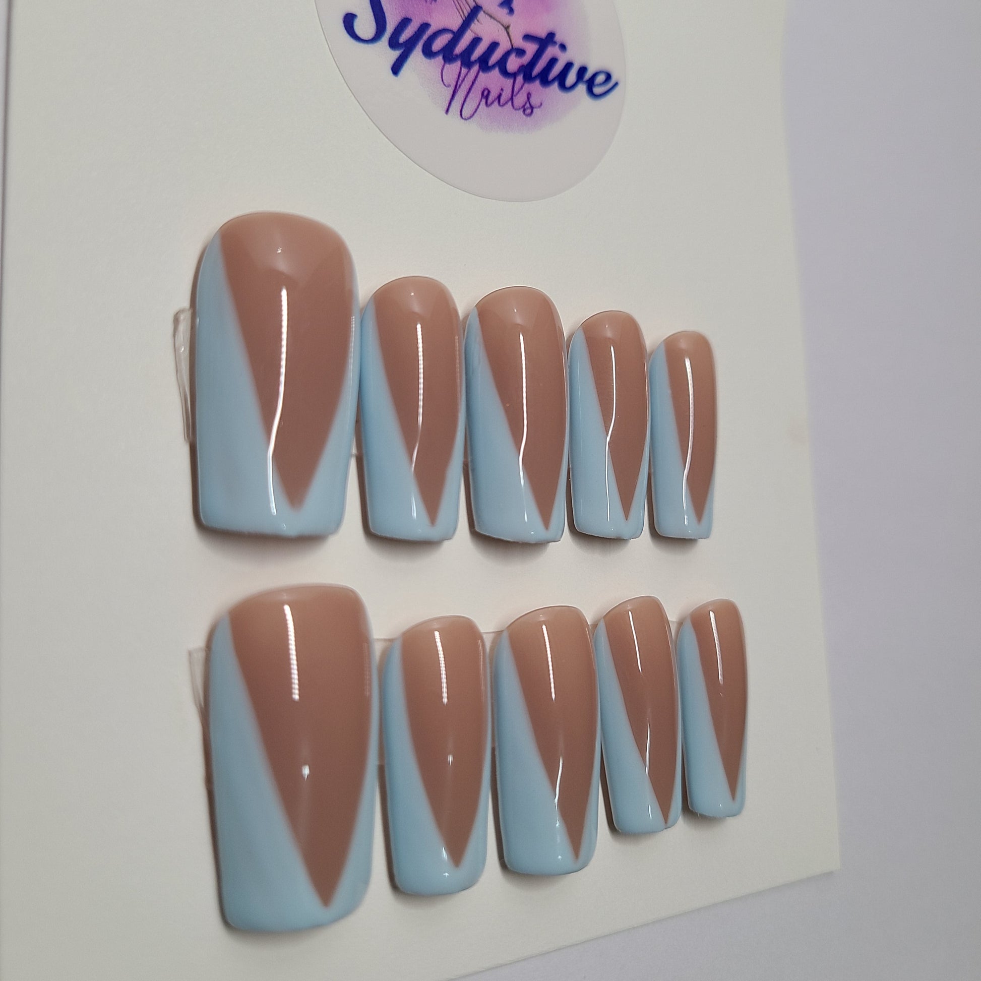 Pale blue v-french nails. Medium Square, (16 pieces) Press-On Nails including Prep Kit (PN000078)