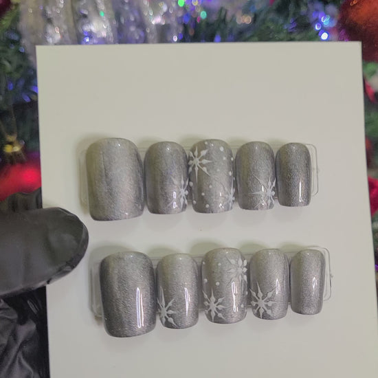 Frosted Silver Night – Silver Chrome Christmas (10 Piece Press-On Nails)