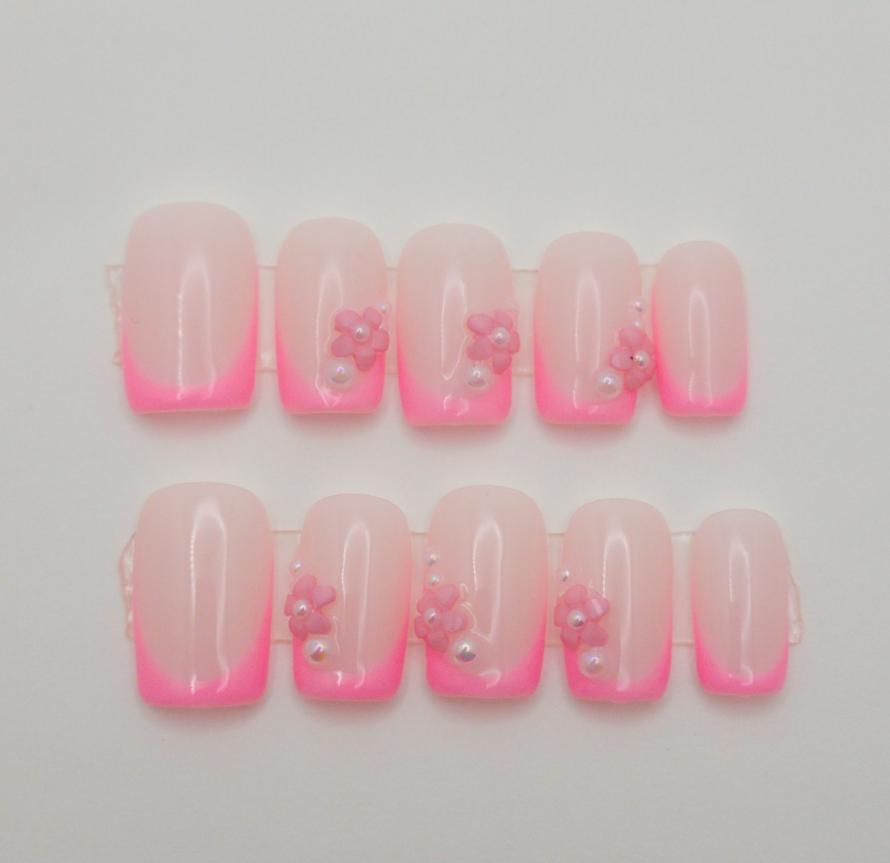 Blush Bloom (14 pieces, Short Square Press on Nails)