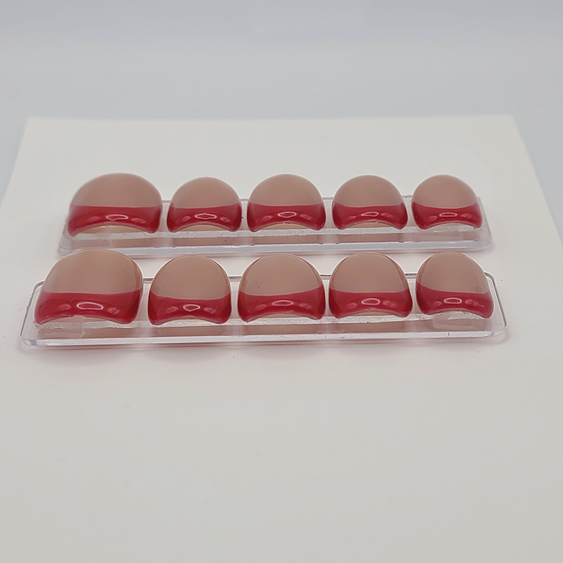 Bold yet beautifully minimal, Scarlet Petite is a timeless French tip with a modern edge. This extra-short square set features striking red French tips over a soft nude base, creating a clean, confident look that’s effortlessly chic. Perfect for everyday wear or a subtle statement, this set proves that less can truly be more.