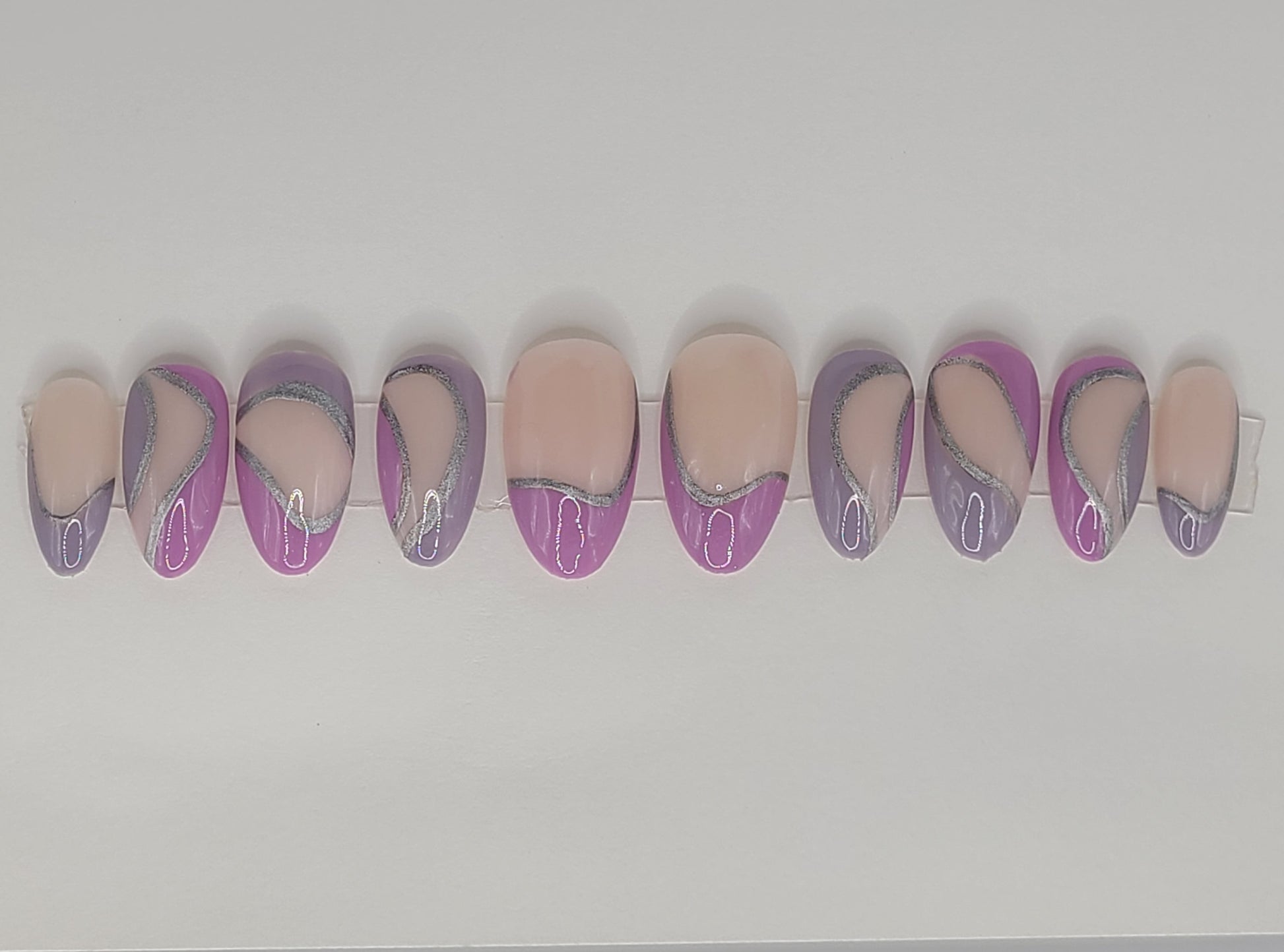 Amethyst Waves (14 pieces, Medium Almond Press on Nails)